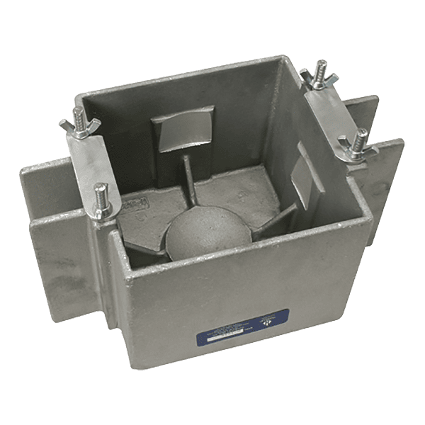 Heavy-duty, cast-aluminum design with quick release latches. Provides convenience for the operator and protection to Kelly ball when transporting to and from the job site.