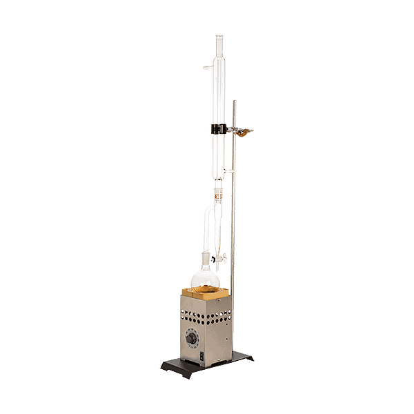 The dean stark moisture test apparatus is used to determine the water content in petroleum products, tars, emulsified asphalts and other bituminous materials by the distillation method. The distillation process allows the water in the test sample to be isolated and collected in the receiver of the Trap. This model uses a glass flask, which is heated by an electric heater. The complete set is comprised of the items listed in the table below.
