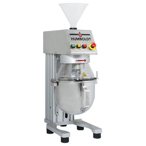 The H-3858 promotes extremely safe operation and complies with CE standards. It provides an emergency stop button and stops automatically when the bowl is lowered during the mixing process. Its design is optimized for easy handling including its easy-lowering bowl mechanism. The mixer provides two mixing speeds: 140 ±5 rpm and 285 ±10 rpm. Dimensions are: 9.25″ x 15.5″ x 22.4″ (235 x 396 x 568mm).