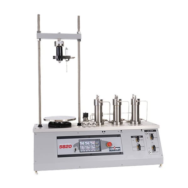 The Auto Triax-Control Pressure Controller (HM-5820) is an automated, hydraulic pressure/volume controller designed to handle saturation, consolidation of a triaxial test sample, as well as permeability tests. It can also perform the triaxial shear function with the use of its integral HM-5020 load frame eliminating the need for a stand-alone load frame. It is available in two configurations; one for high-pressure applications: 0-500psi (3500kpa), and a standard pressure model for 0-150psi (1034kpa) applications.