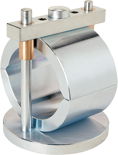 Marshall breaking heads consist of an upper and lower cylindrical segment having 3″ inside radius of curvature for 6″ samples and 2″ for a 4″ sample. The lower segment is mounted on a base with two perpendicular guide rods extending vertically from the base. One guide rod is larger than the other, with a correspondingly larger guide sleeve in the upper segment to ensure correct assembly. Guide sleeves in the upper segment bring the two sections together without appreciable binding or loose motion on the guide rods.