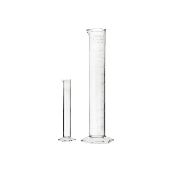 Plastic Graduated Cylinder. Polypropylene graduated cylinders are double scale with easy-to-read numbers. Stable base makes cylinders tip and roll proof and have flared top for easy filling. (Shown is H-4916P.500.)