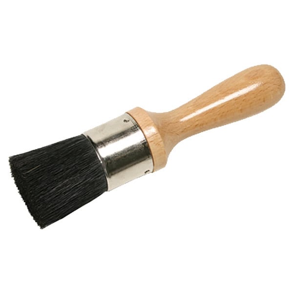 Horsehair, wood handle; 1.5″ x 1.25″ dia. (38 x 32mm), 5.25″ (133mm) overall length.