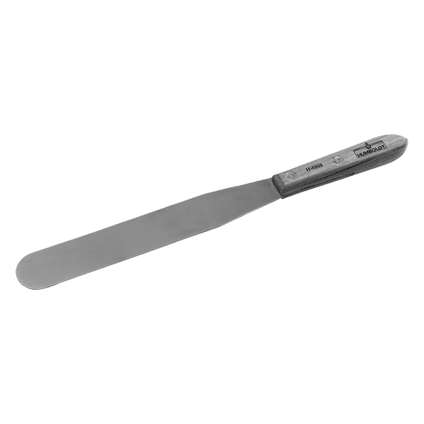 Flexible stainless steel blades with straight edges and rounded ends. Blade is riveted into wooden handle.
